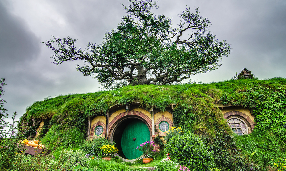 Este bine documentat ca The Hobbit a fost filmat in Noua Zeelanda, unde peisajele sale uluitoare si unice sunt prezentate peste tot si de atunci a devenit o reclama uriasa pentru turismul din NZ. Vizitatorii atrag acum din departe pentru a vedea locatiile prezentate in trilogie, cum ar fi Lacul Pukaki, locatia de filmare pentru Lake Town, cunoscuta pentru privelistile sale spectaculoase si Alpii de Sud, care conduc Insula de Sud, unde piticii calatoresc prin Muntii Cetosi, prezentand ghetari, cascade si vai uimitoare. Fanii pot face pelerinajul tarii pentru a merge pe urmele lui Bilbo si Gandalf si sa se bucure de privelistile maiestuoase ale „caminului Pamantului de Mijloc”.