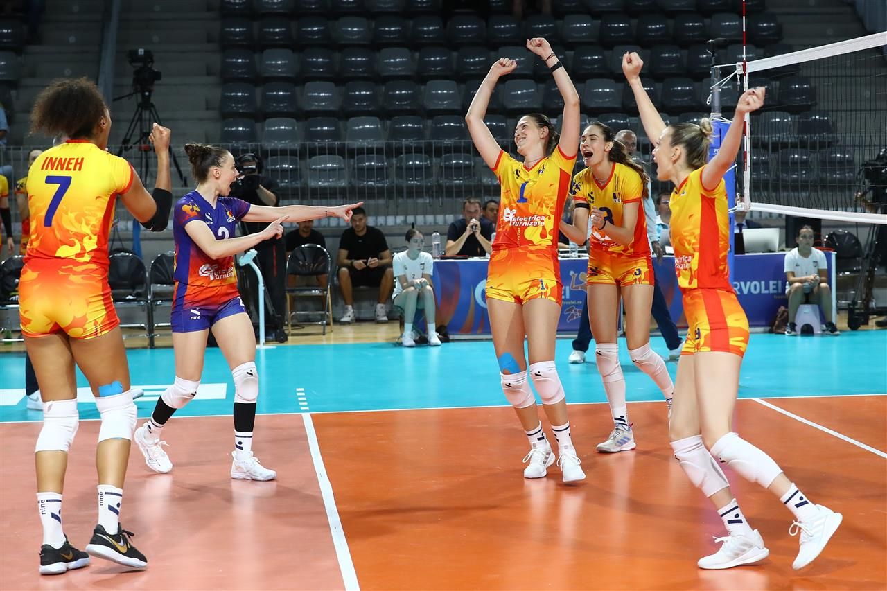 În meciul principal, România a fost învinsă cu 3-0 (25-23, 25-17, 27-25), însă scorul strâns din două dintre seturi reflectă o evoluție echilibrată. În special în setul al treilea, româncele au condus cu 16-12 și 21-18, ratând două mingi de set.